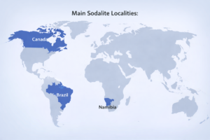 • Namibia (Kunene Region): Known for producing high-quality, often very blue Sodalite.
